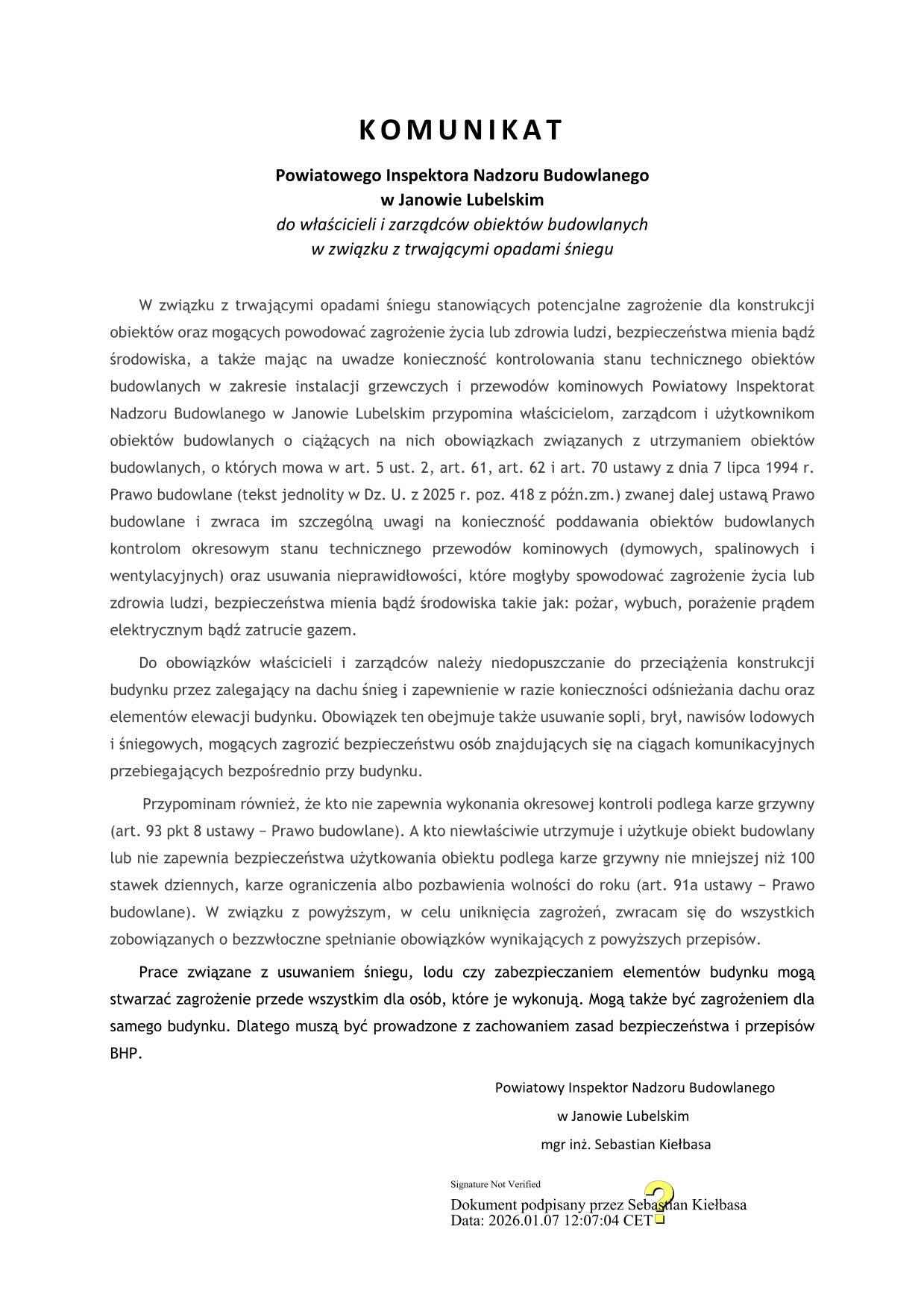 Uwaga – trudne warunki zimowe