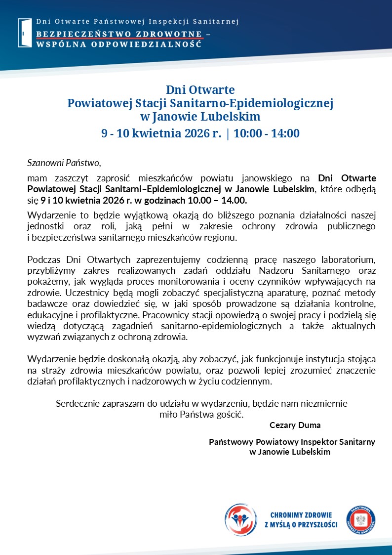 Dni Otwarte Państwowej Inspekcji Sanitarnej; 9-10 kwietnia 2026