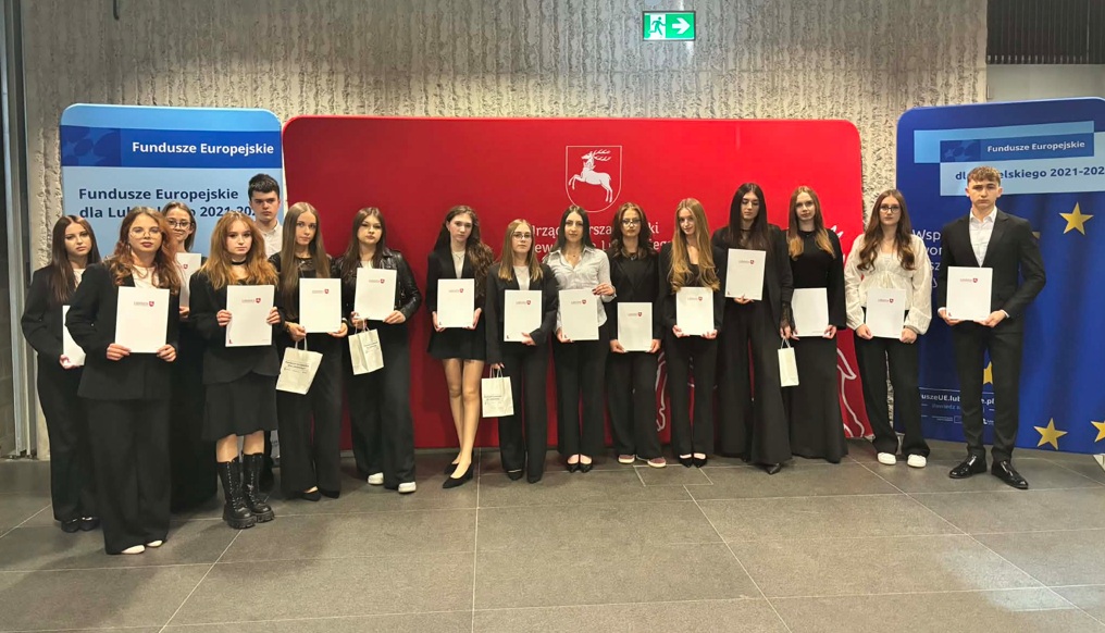 Liczna grupa uczniów I LO odebrała 13 kwietnia z rąk marszałka województwa lubelskiego stypendia w ramach programu „Lubelskie wspiera uzdolnionych 2025- 2026”.