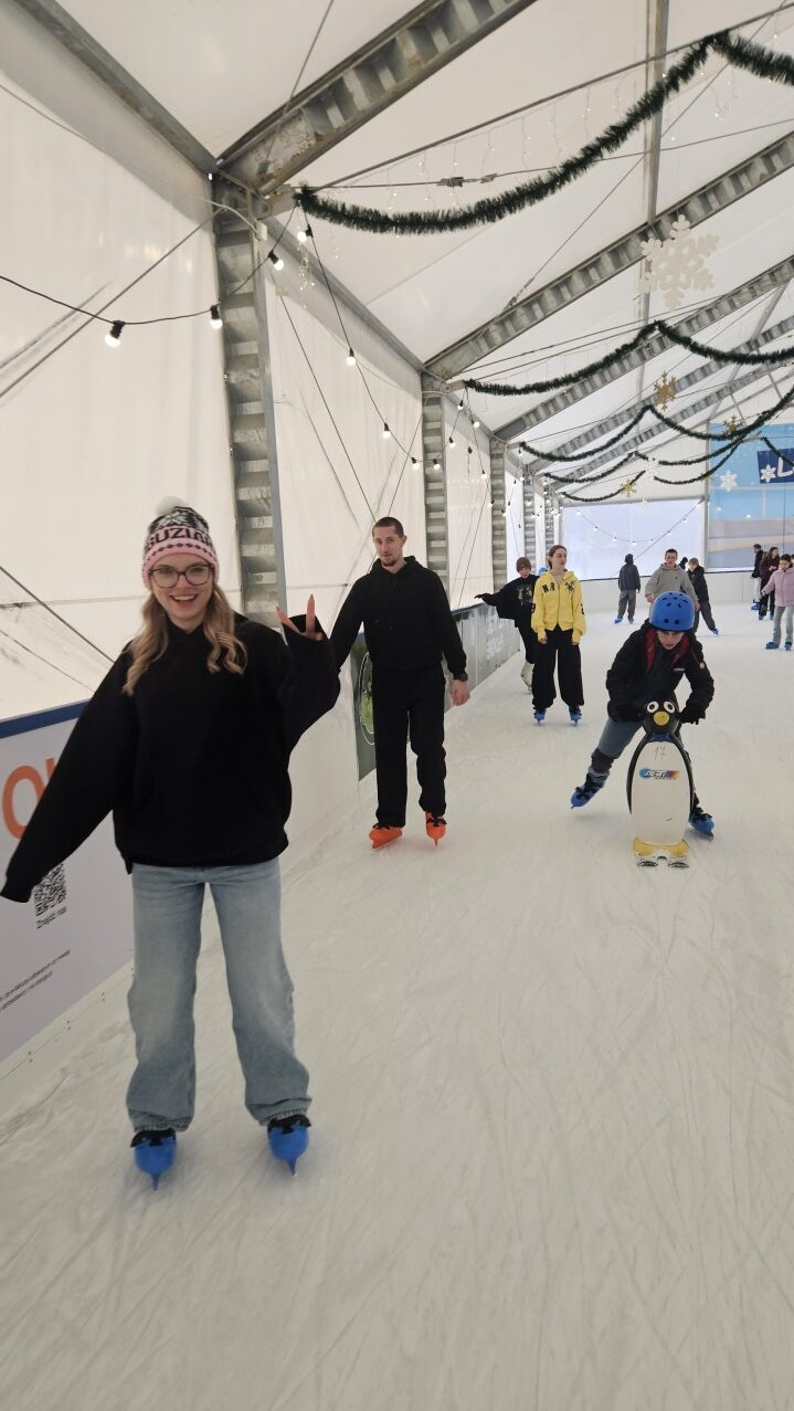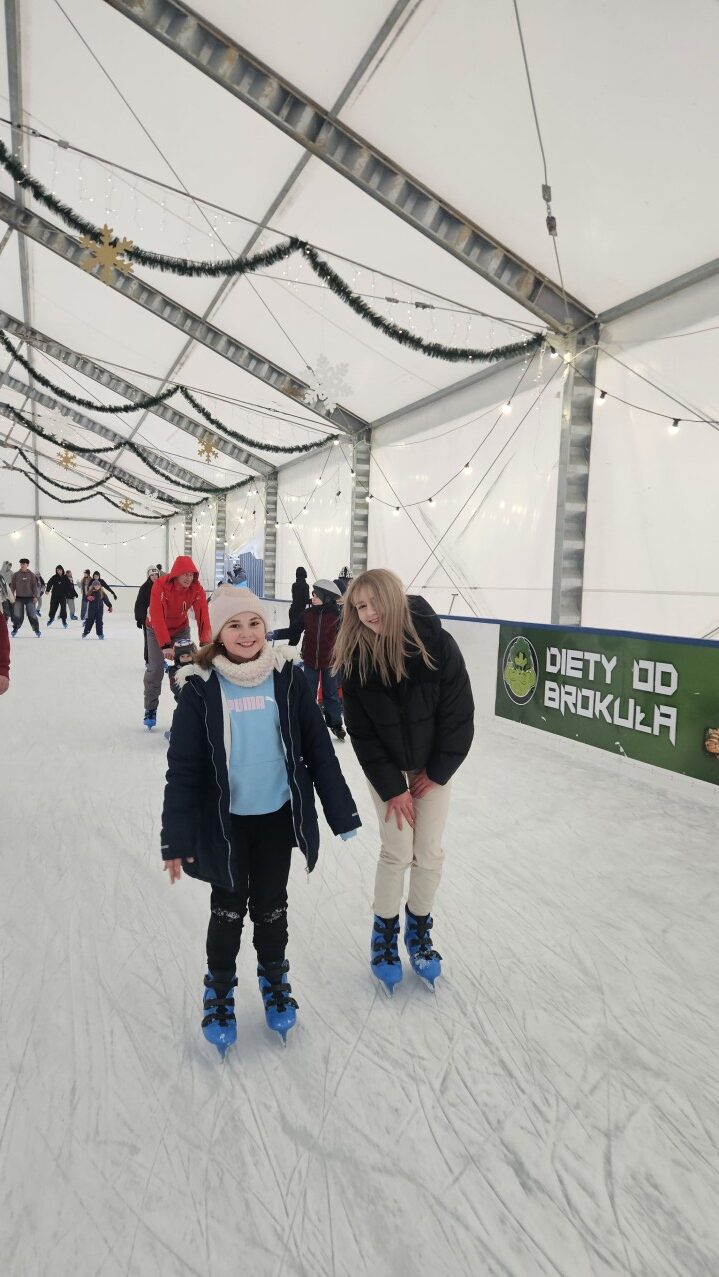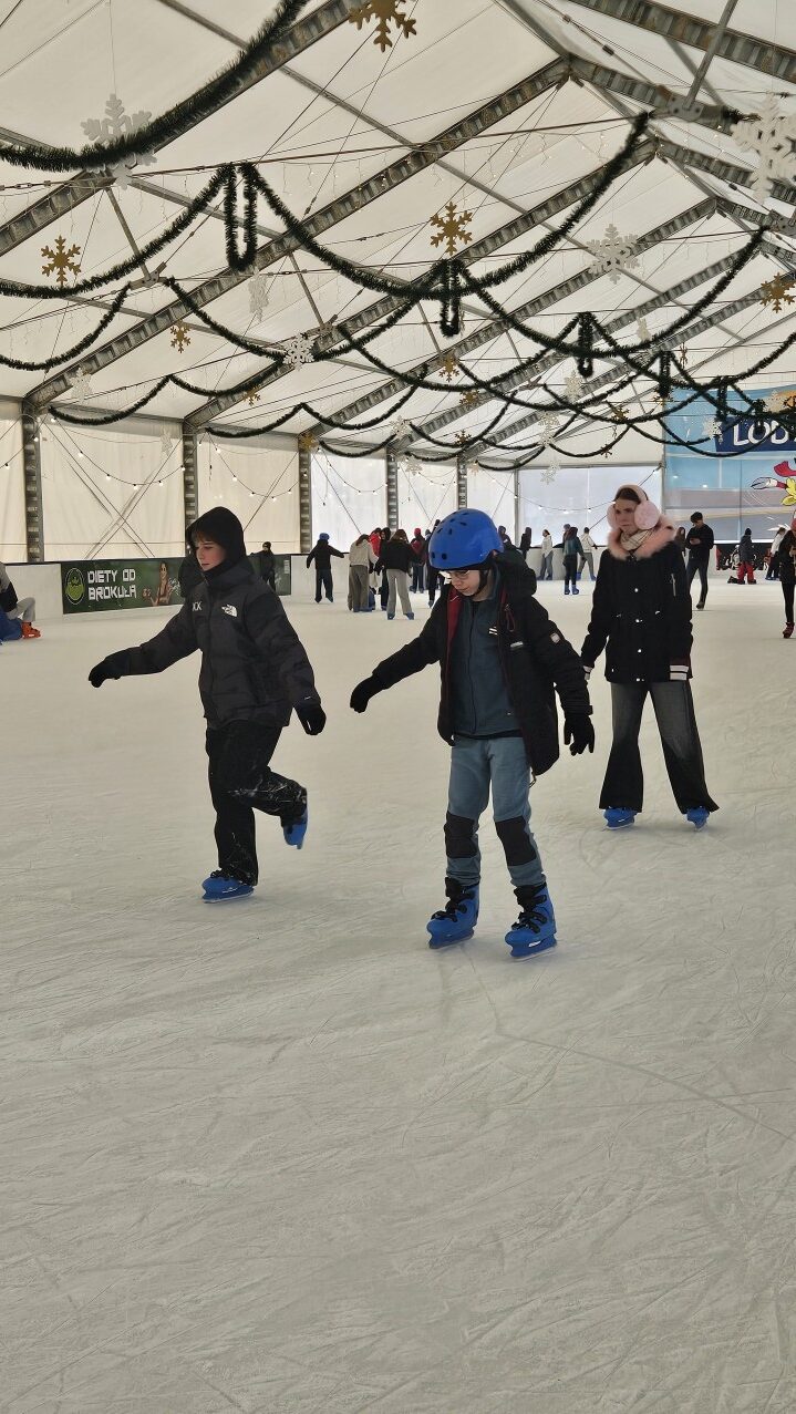 Kolejnym elementem wyjazdu było wyjście do kina, które pozwoliło uczestnikom na chwilę relaksu. W programie przewidziano również czas wolny w galerii handlowej i wspólny posiłek. Zwieńczeniem dnia był pobyt na lodowisku. Jazda na łyżwach okazała się doskonałą formą aktywnego wypoczynku oraz atrakcyjnym podsumowaniem intensywnego dnia. Uśmiechy i pozytywne reakcje młodzieży były najlepszym potwierdzeniem, że wyjazd należy uznać za bardzo udany.