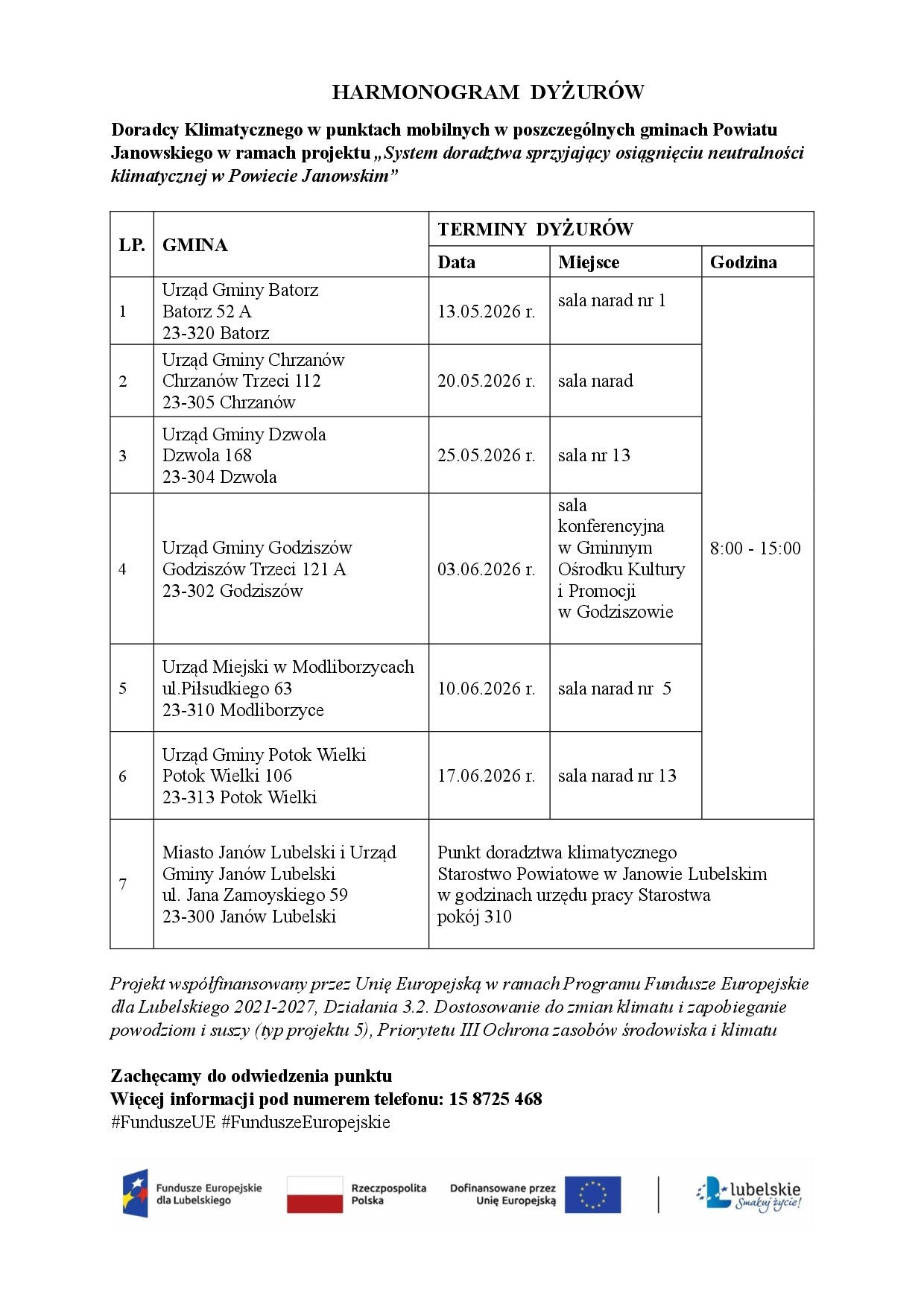 Zaproszenie dla mieszkańców, przedsiębiorców, instytucji publicznych Urzędu Gminy Dzwola na bezpłatne konsultacje z Doradcą klimatycznym