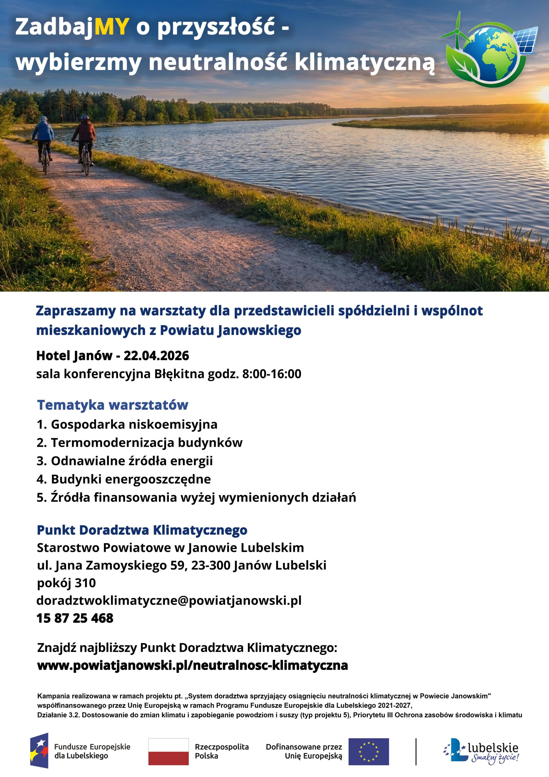 Warsztaty dla przedstawicieli Jednostek Samorządu Terytorialnego w ramach projektu pn.: „System doradztwa sprzyjający osiągnięciu neutralności klimatycznej w Powiecie Janowskim” – 26-11-2025