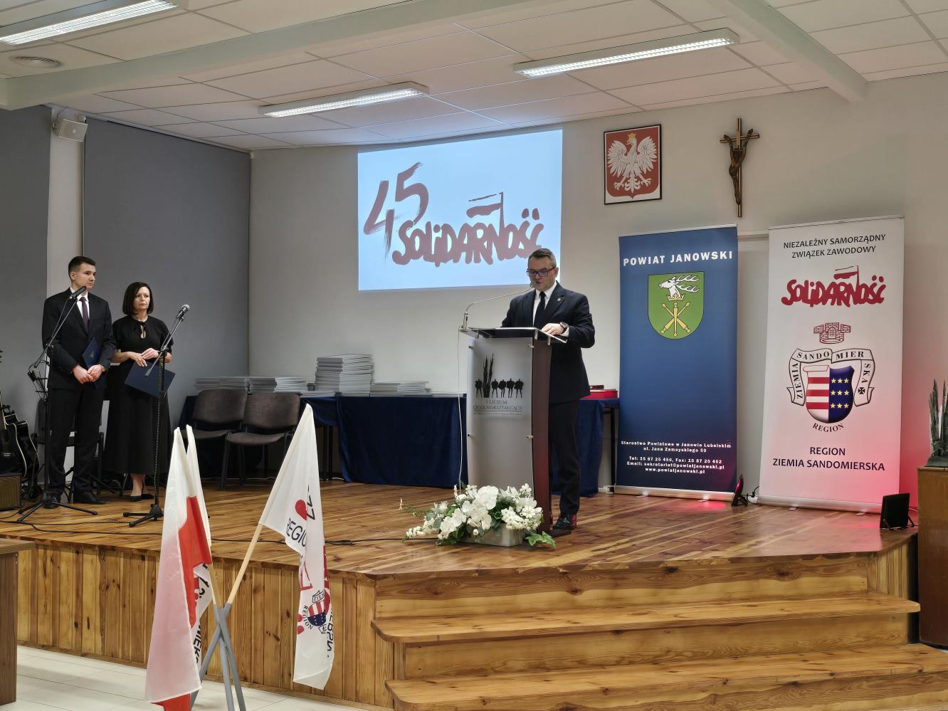 W sobotę, 22 listopada, w auli I Liceum Ogólnokształcącego im. Bohaterów Porytowego Wzgórza w Janowie Lubelskim odbyły się uroczyste powiatowe obchody 45-lecia powstania NSZZ „Solidarność”. Wydarzenie stało się okazją do wspólnego świętowania, refleksji oraz podziękowań dla wszystkich, którzy przez lata budowali i wspierali lokalne struktury Związku.