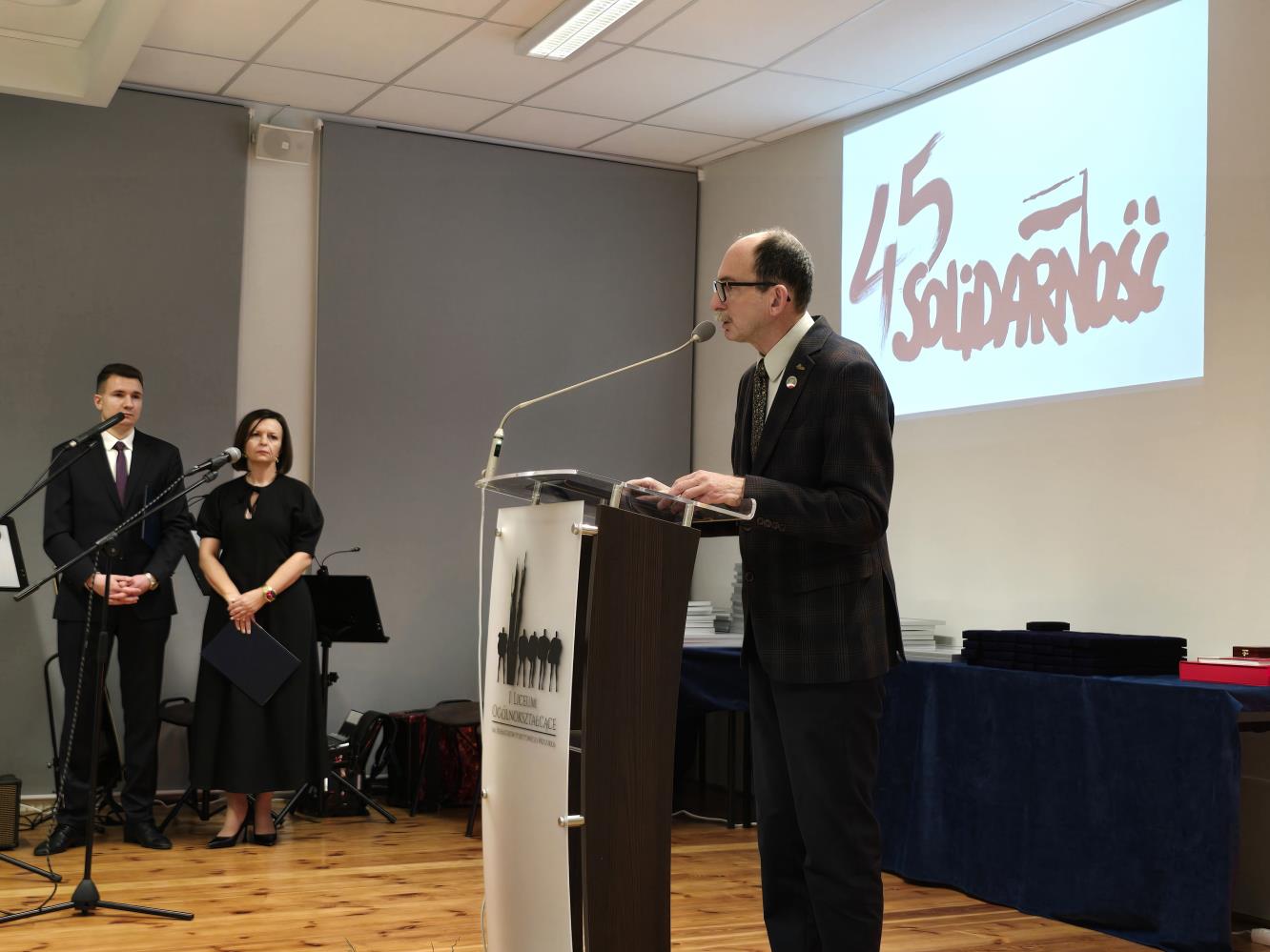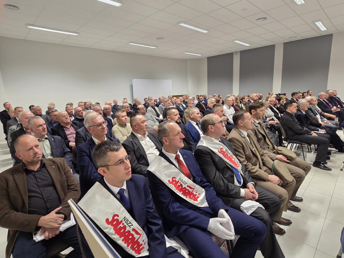 Aula I LO wypełniła się po brzegi. Uroczystość zgromadziła licznych działaczy, sympatyków oraz gości, którzy od lat współtworzą historię „Solidarności” w regionie. Podczas spotkania uhonorowano ponad 80 osób zasłużonych dla działalności Związku – zarówno tych, którzy od początku angażowali się w jego rozwój, jak i tych, którzy dziś kontynuują misję solidarności, odpowiedzialności i wspólnego działania.