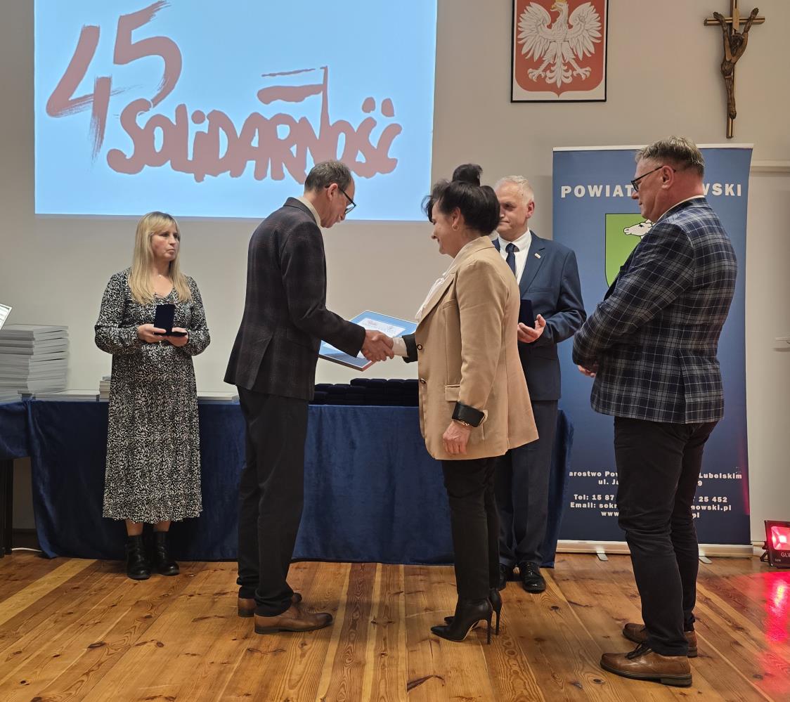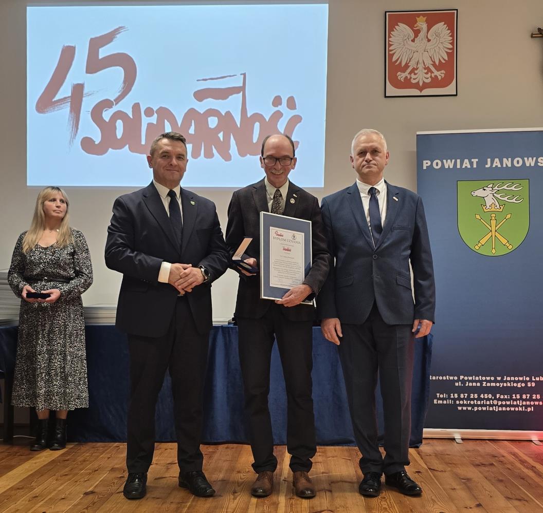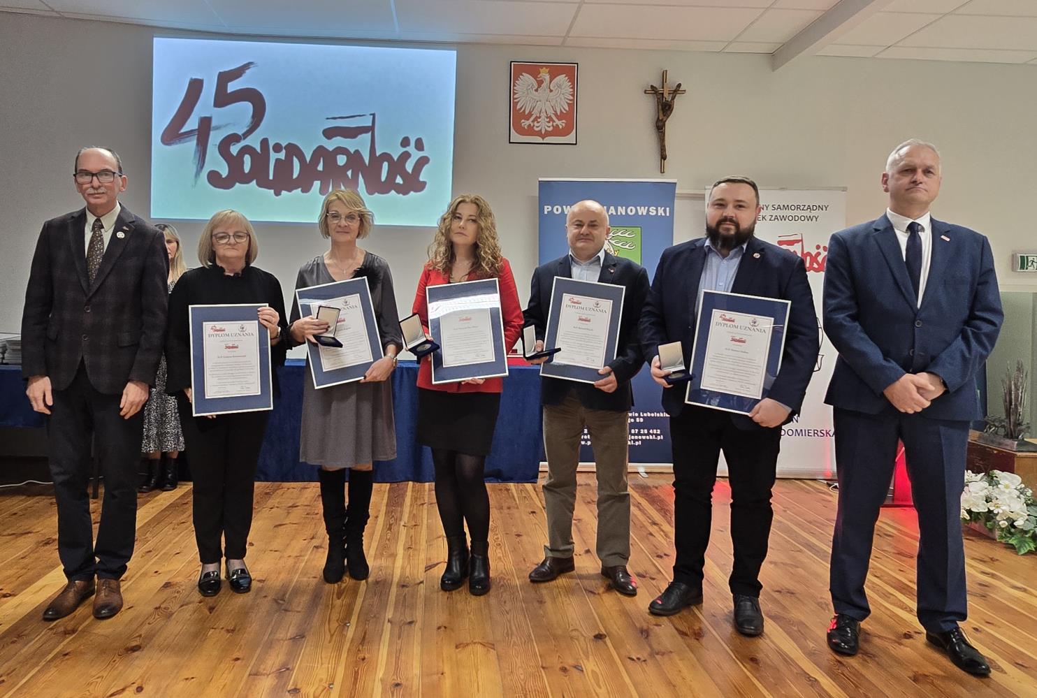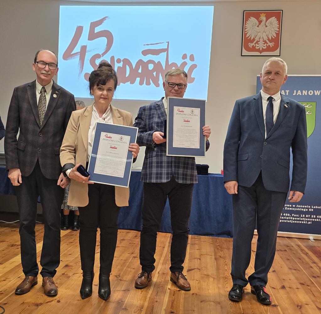 Wyróżnienia w postaci okolicznościowych dyplomów i medali otrzymali członkowie Międzyzakładowej Organizacji Związkowej NSZZ „Solidarność”, reprezentujący m.in. DPS, Pływalnię „Otylia” oraz Fortaco Group. Uhonorowano również przedstawicieli „Solidarności” z janowskiego szpitala, Gminnej Spółdzielni „Samopomoc Chłopska”, Przedsiębiorstwa Gospodarki Komunalnej i Mieszkaniowej, Państwowej Straży Pożarnej, Rejonu Energetycznego w Janowie Lubelskim, a także pracowników firm Ekomel i Caterpillar oraz Nadleśnictwa Janów Lubelski. Podziękowania skierowano też do członków NSZZ „Solidarność” Rolników Indywidualnych. W gronie uhonorowanych znaleźli się ponadto Starosta Janowski Artur Pizoń, Burmistrz Janowa Lubelskiego Krzysztof Kołtyś oraz Dyrektor ZST w Janowie Lubelskim Iwona Pająk.