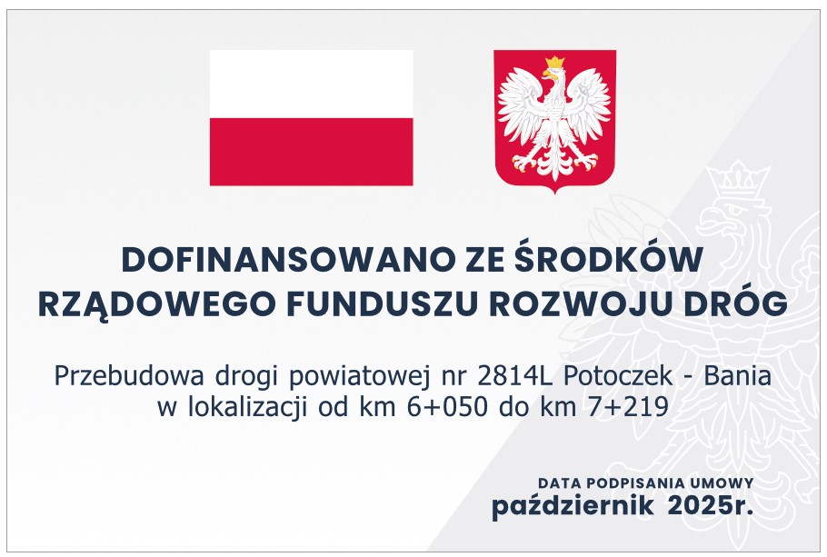 Rządowy Fundusz Rozwoju Dróg Przebudowa drogi powiatowej nr 2814L Potoczek – Bania w lokalizacji od km 6+050 do km 7+219 Przebudowa drogi powiatowej nr 2808L Janów Lubelski (ul. Bialska) – Tokary – Huta Turobińska w lokalizacji od km 3+540 do km 5+000 Przebudowa drogi powiatowej nr 2816L Łążek Ordynacki – Momoty Dolne w m. Momoty Dolne od km 6+867 do km 8+141 Przebudowa drogi powiatowej nr 2808L Janów Lubelski (ul. Bialska) – Tokary – Huta Turobińska w lokalizacji od km 12+800 do km 15+313 i od km 15+435 do km 16+081 Przebudowa dróg powiatowych nr 2825L Dzwola – Kocudza Druga od km 0+009 do km 2+469 i nr 2824L Dzwola – Zdzisławice od km 0+000 do km 0+647 Remont drogi powiatowej nr 2820L Szklarnia – Flisy w lokalizacji od km 0+003 do km 4+472 Budowa drogi dla pieszych w ciągu drogi powiatowej nr 2822L Zofianka Górna – Zofianka Górna w m. Zofianka Górna Przebudowa drogi powiatowej nr 2828L Janów Lubelski ul. Okopowa w lokalizacji od km 0+010 do km 0+680 Przebudowa drogi powiatowej nr 2815L Modliborzyce – Gwizdów – gr. woj. w lokalizacji od km 0+410 do km 1+622 Przebudowa drogi powiatowej nr 2814L Potoczek – Bania w lokalizacji od km 3+010 do km 6+072 Przebudowa drogi powiatowej nr 2819L Janów Lubelski ul. Bohaterów Porytowego Wzgórza w lokalizacji od km 0+043 do km 2+053 – ETAP I od km 0+780 do km 2+053 Przebudowa drogi powiatowej nr 2815L Modliborzyce – Gwizdów – gr. woj. w lokalizacji od km 2+050 do km 7+505 Przebudowa drogi powiatowej nr 2819L Janów Lubelski ul. Bohaterów Porytowego Wzgórza w lokalizacji od km 0+043 do km 2+053 – ETAP II od km 0+043 do km 0+780