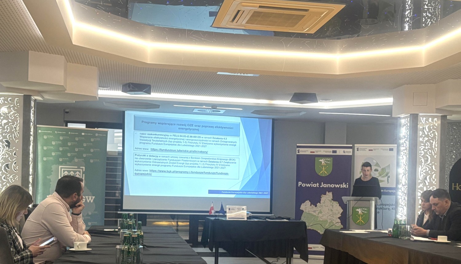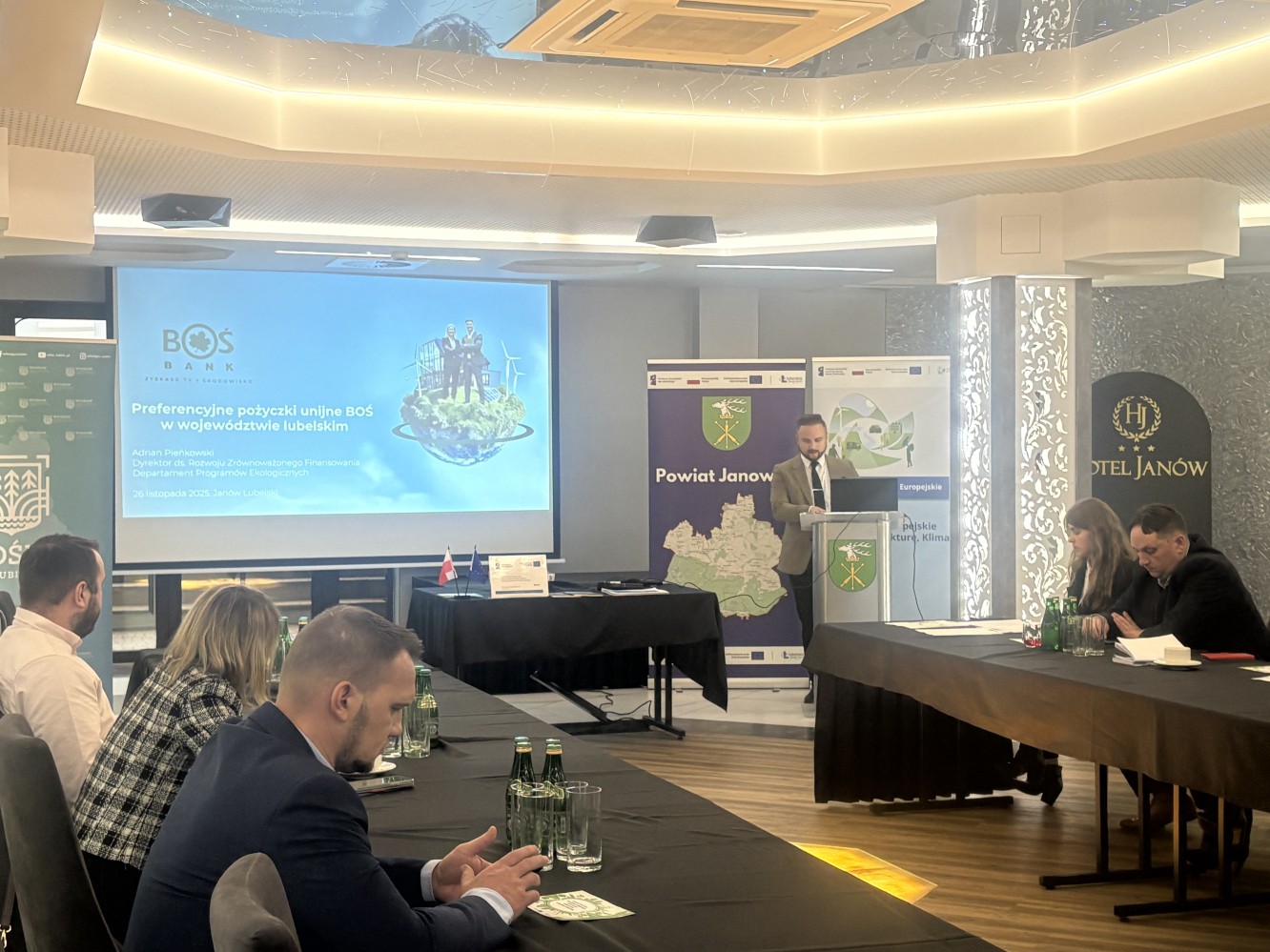 W dniu 26 listopada 2025 r. odbyły się warsztaty skierowane do przedstawicieli Jednostek Samorządu Terytorialnego. Warsztaty pt.: „Neutralność klimatyczna w Powiecie Janowskim” zostały zorganizowane przez Powiat Janowski w ramach projektu pn.: „System doradztwa sprzyjający osiągnięciu neutralności klimatycznej w Powiecie Janowskim” współfinansowanego przez Unię Europejską w ramach programu Fundusze Europejskie dla Lubelskiego 2021-2027 Działania 3.2 Dostosowanie do zmian klimatu i zapobieganie powodziom i suszy (typ projektu 5), Priorytetu III Ochrona zasobów środowiska i klimatu.